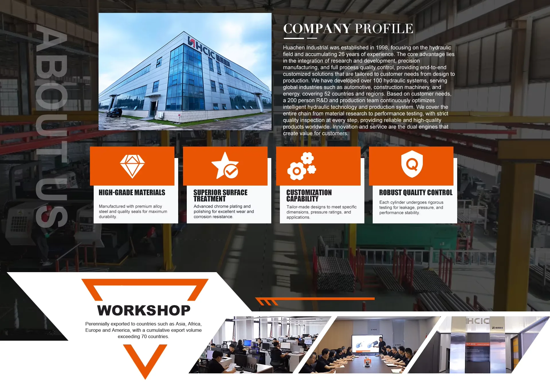 HCIC Hydraulic is een professionele hydraulische fabrikant, gespecialiseerd in het ontwerp, de fabricage, de installatie, de transformatie, de inbedrijfstelling en de verkoop van merken van hydraulische componenten. Wij bieden technische diensten en streven ernaar onze klanten veilige en betrouwbare producten te bieden die aan de meest veeleisende eisen voldoen. Het technische team van HCIC werkt nauw samen met klanten om hun toepassingen te begrijpen. Met behulp van een reeks beproefde ontwerpmethoden en geavanceerde productieapparatuur, gekoppeld aan ongeëvenaarde engineering- en productie-ervaring, ontwikkelt HCIC Hydraulics veilige en betrouwbare hydraulische cilinders voor kritische toepassingen, ondersteund door een ongeëvenaarde klantenservice. Wij ontwerpen, engineeren en produceren hydraulische cilinders in een ultramoderne productiefaciliteit en houden ons aan ons ISO 9001-2015 gecertificeerde kwaliteitsmanagementsysteem om onze klanten producten van de hoogste kwaliteit te garanderen.
