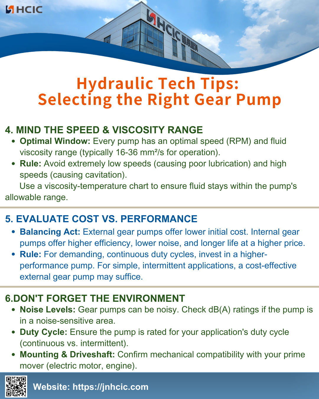 Regel: Investeer voor veeleisende, continue bedrijfscycli in een pomp met hogere prestaties. Voor eenvoudige, intermitterende toepassingen kan een kosteneffectieve externe tandwielpomp voldoende zijn.